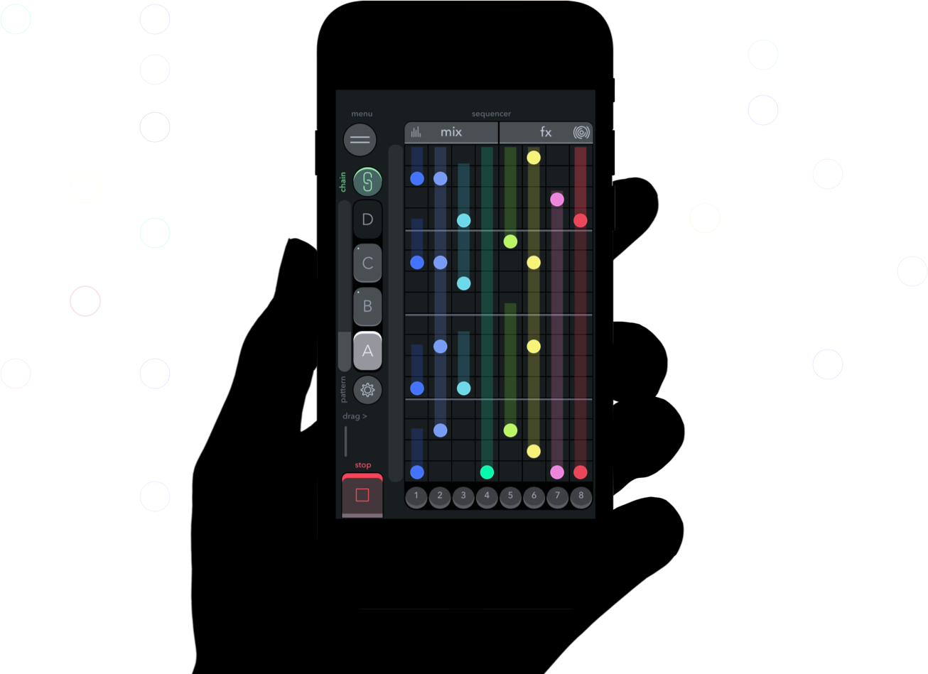 Mix like a pro! Change volume and stereo balance, mute, solo, reverb, delay, filter for each pad